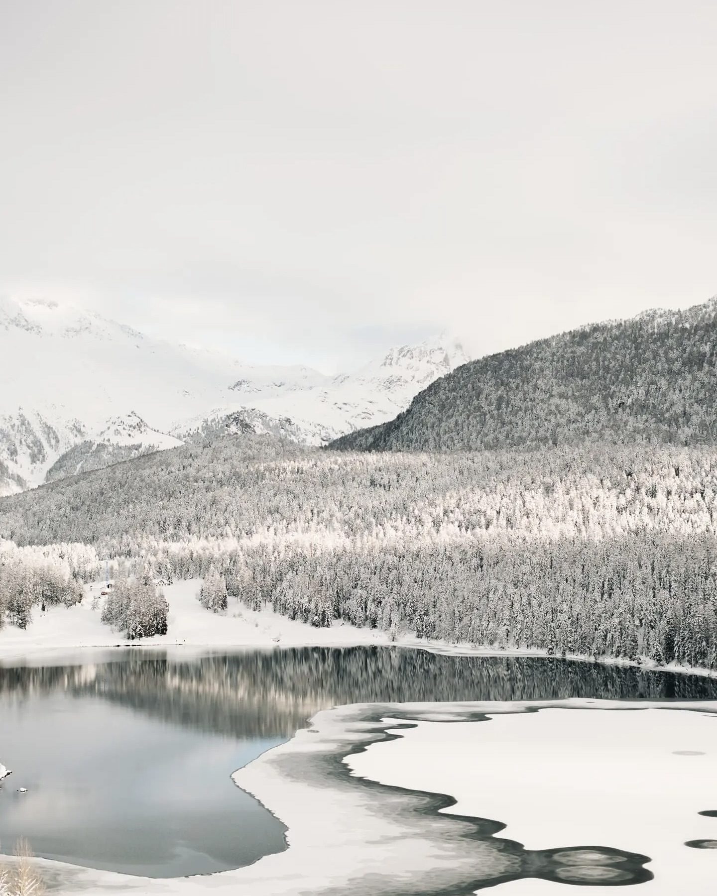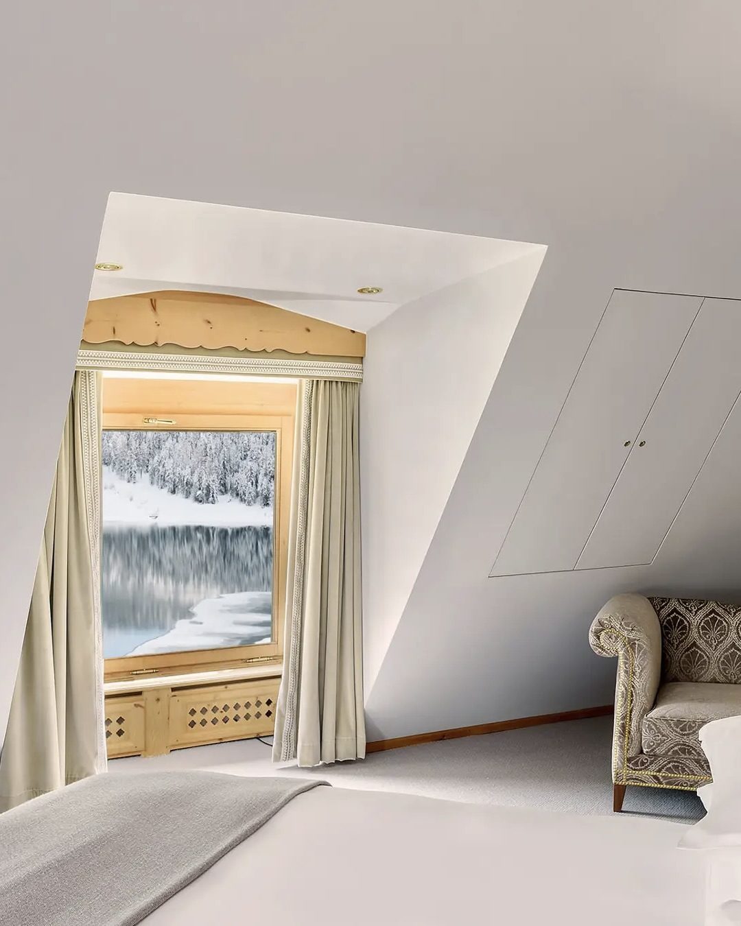Perched above Lake St. Moritz, the Palace enjoys one of the most commanding views in the Alps. From its terrace, the panorama stretches across the frozen lake to the snow-dusted mountains beyond, a scene that shifts with the light throughout the day.