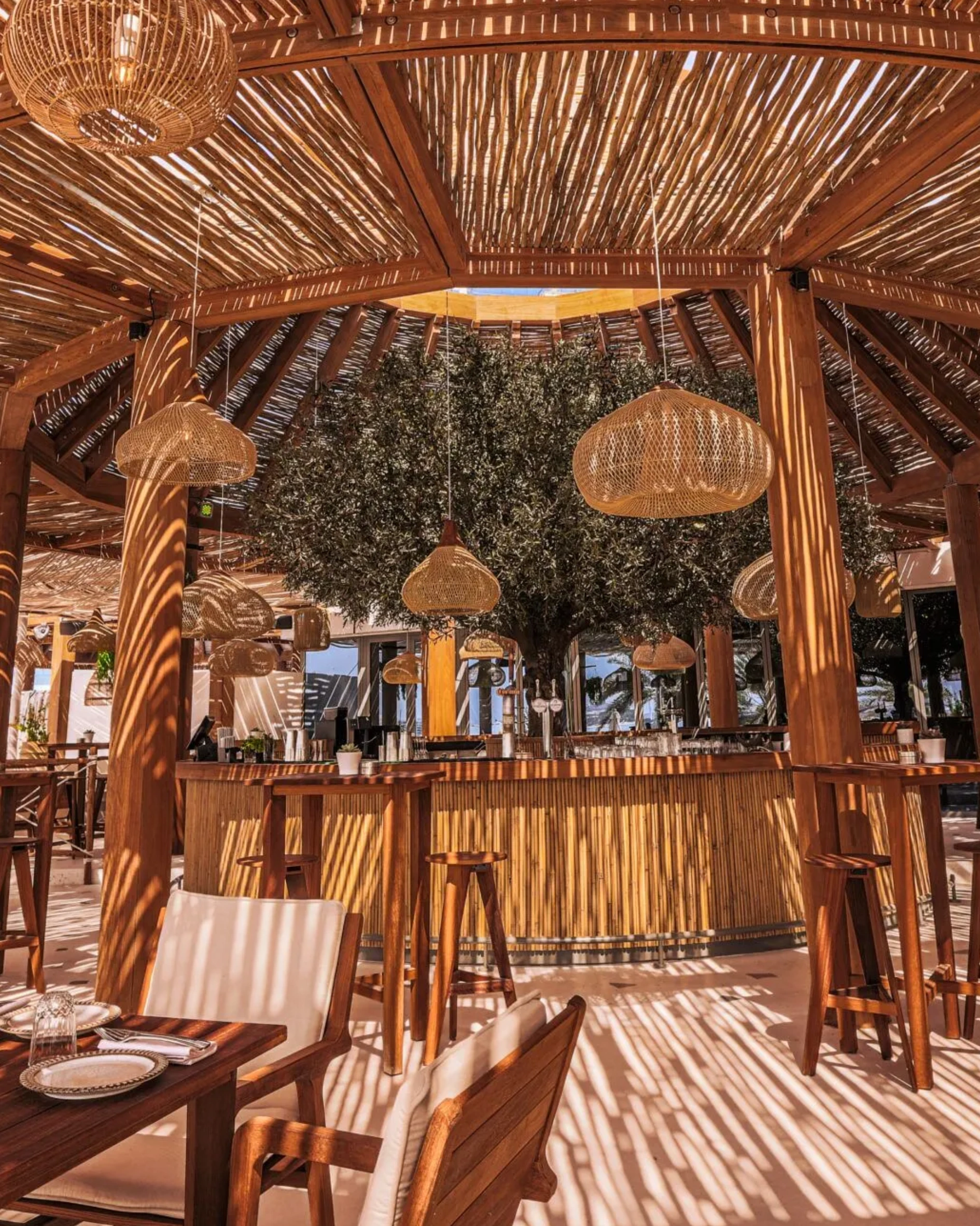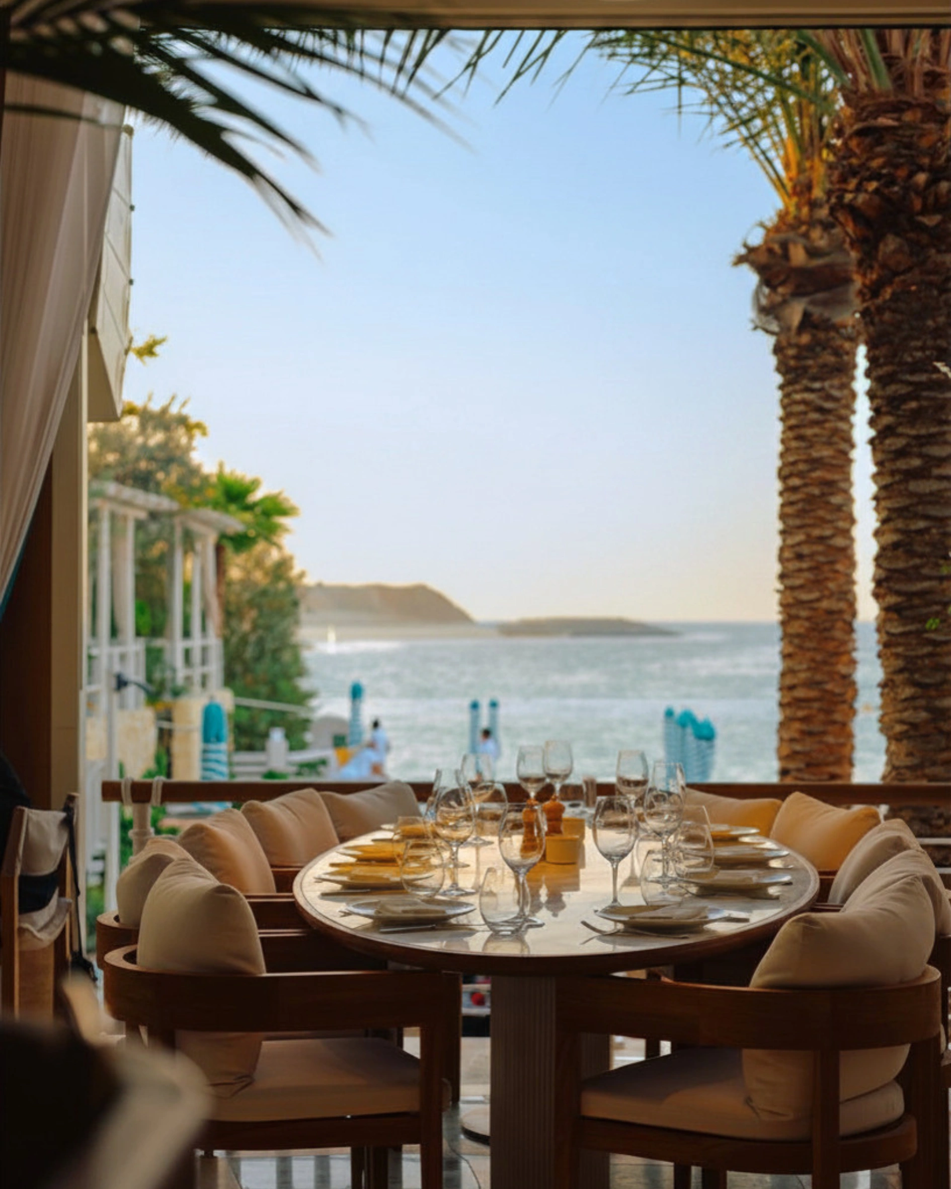 Kyma Beach on Palm West Beach combines a Greek restaurant with a refined beach club format. The design is minimal and considered, positioning it among the best restaurants for a long lunch in Dubai for a more curated beachfront setting.