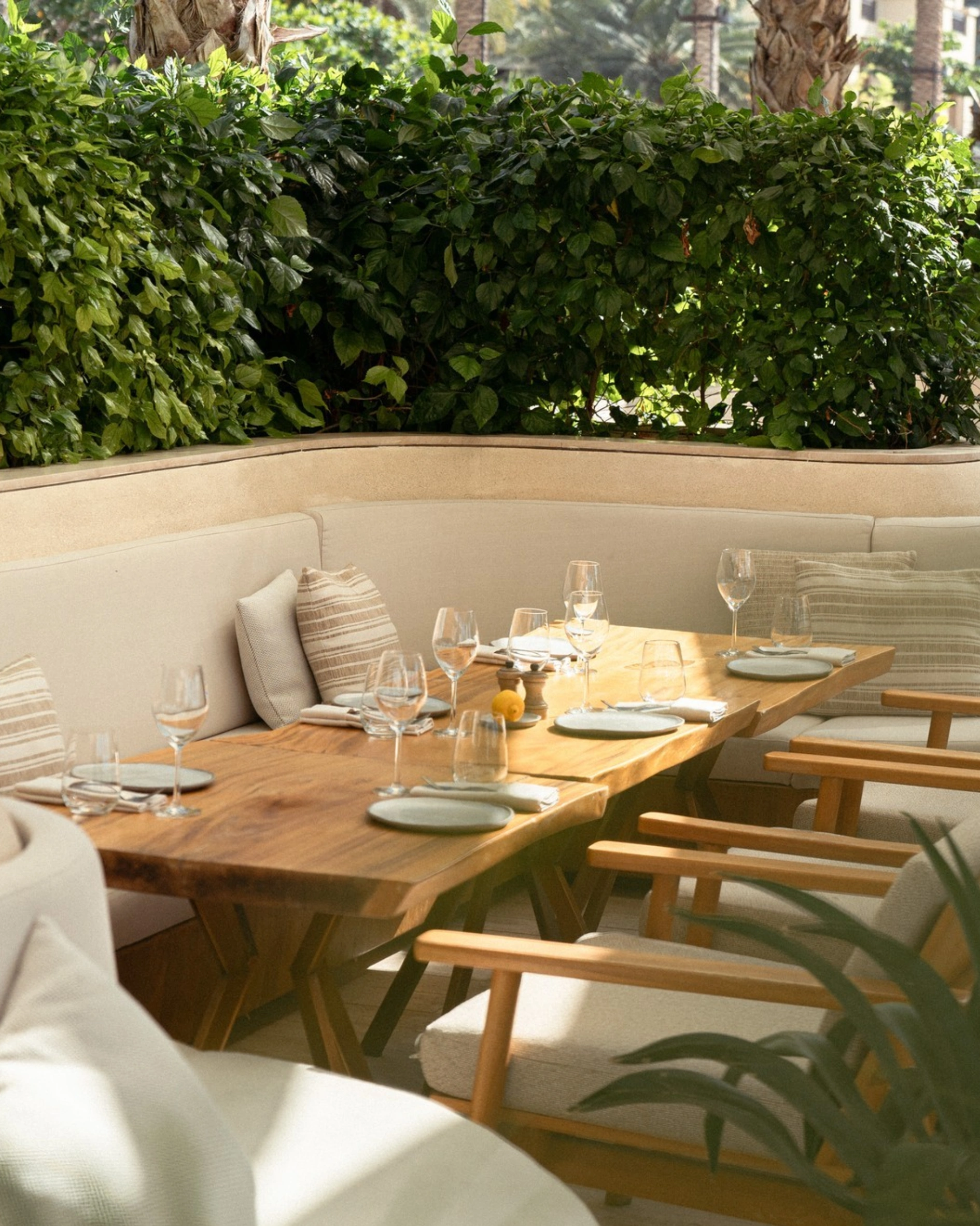 Ula, located at Dukes The Palm, offers a relaxed, bohemian beachfront setting suited to extended lunches. The open layout and mix of shaded seating and beach access make it easy to settle in, placing it among the best restaurants for a long lunch in Dubai for a more casual format.