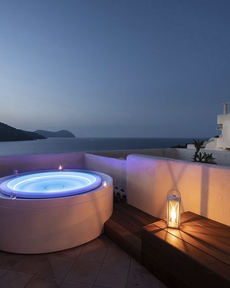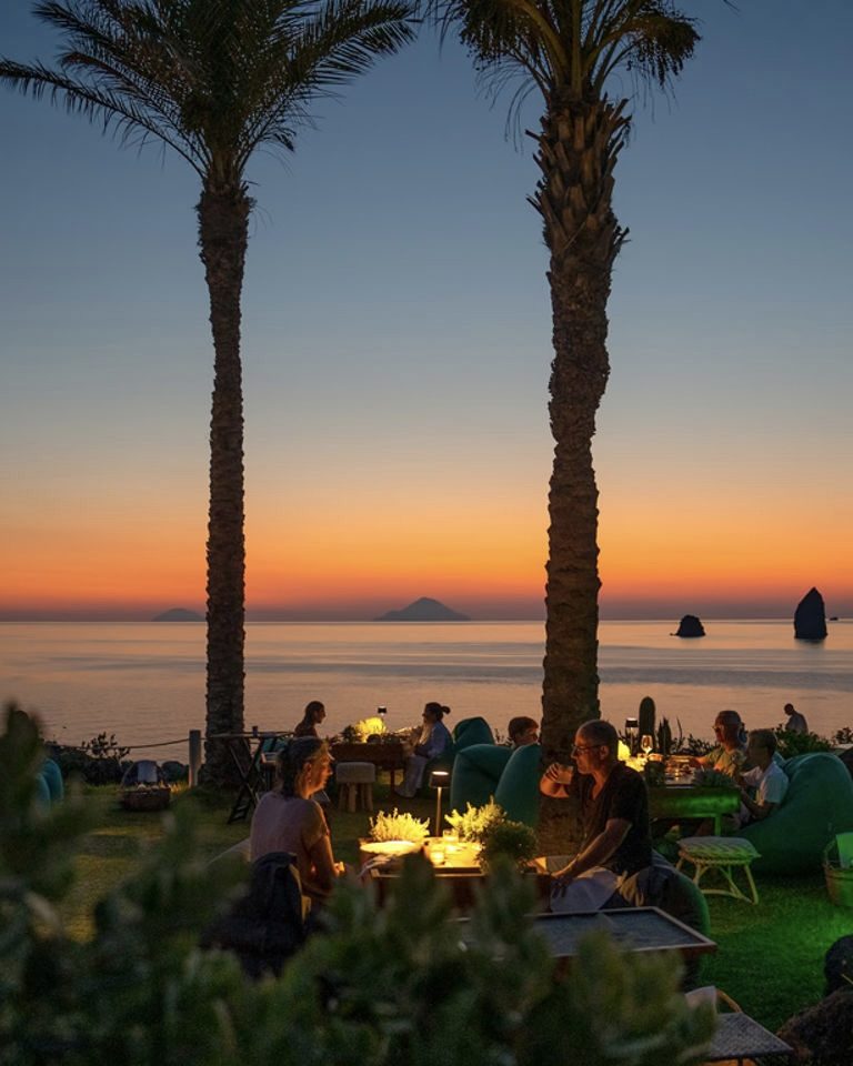 Set on the island of Vulcano overlooking the Aeolian archipelago, Therasia Resort Sea & Spa offers a dramatically different perspective on Sicily. Built from local volcanic stone and positioned high above the Tyrrhenian Sea, the hotel is defined by wide horizons, uninterrupted sunset views, and a strong connection to the surrounding landscape. Its remote island setting gives the property a sense of quiet separation from mainland Sicily.