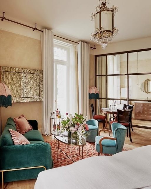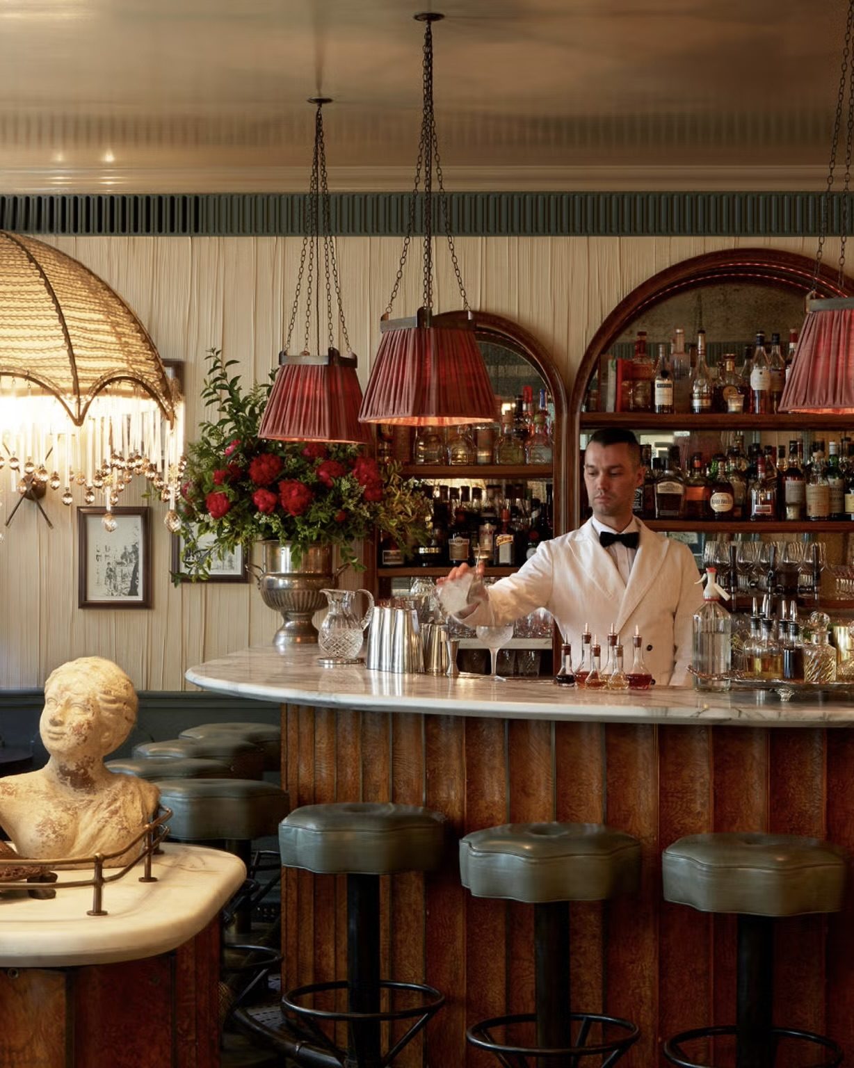 Located in the heart of Soho, Kettner’s Townhouse offers a layered, atmospheric escape from one of London’s busiest neighbourhoods. The building’s historic character is reflected in its interiors, where rich colours, textured fabrics, and low lighting create a sense of enclosure and contrast with the streets outside. The townhouse format gives the hotel a more intimate scale.
