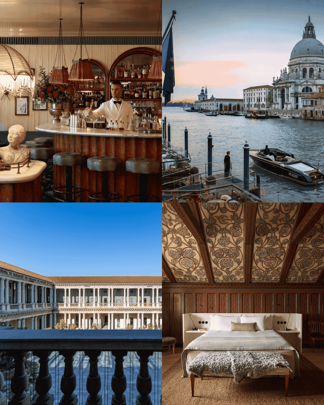 Overlooking the Grand Canal, The Gritti Palace occupies one of Venice’s most recognisable waterfront positions. The building’s historic interiors are defined by rich fabrics, Murano glass, and original architectural details, reflecting the city’s traditional sense of grandeur.