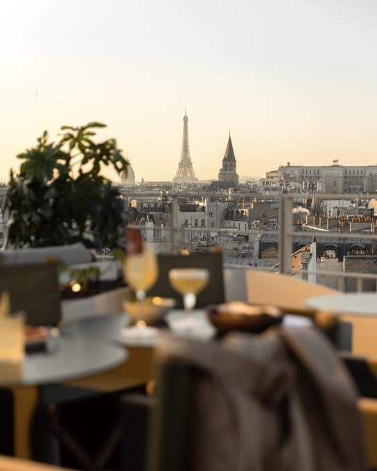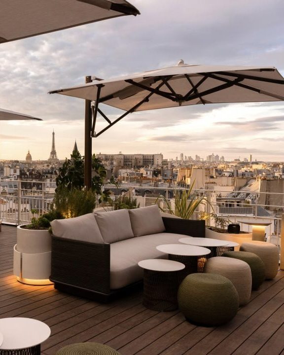 The rooftop bar plays a central role in the experience, drawing guests upward in the evening to take in sweeping city views. It’s a hotel where romance is shaped by setting and perspective, offering a Paris stay that feels current, confident, and quietly intimate.
